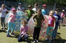 18 июня ребята пришкольного лагеря стали участниками захватывающего ШОУ "Бампербол" или по другому - Футбол в шарах – безумно интересный аттракцион, который подарил ребятам море смеха и огромный заряд бодрости.