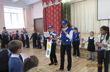 В актовом зале школы прошел праздник для первоклассников "Посвящение в юные пешеходы". Перед ребятами выступила школьная агитбригада ЮИД.