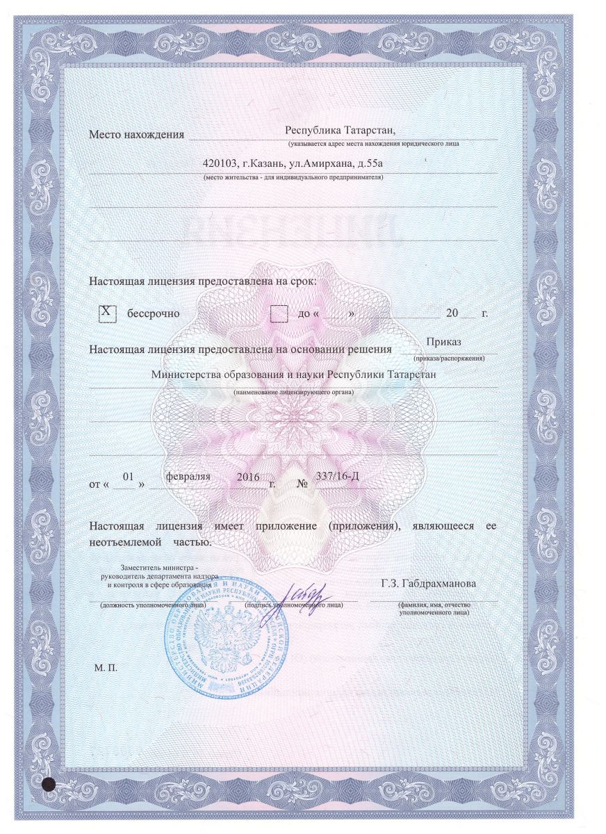Лицензия 1 страница Лицензия 2 страница Приложение к лицензии
