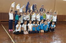 Сегодня тренеры футбольного клуба "Мастерс" провели в нашей школе спортивный праздник, в котором с удовольствием учавствовали первоклассники.