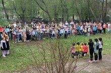 Праздник двора, посвященный Дню Победы, прошел сегодня во дворе школы. Концерт был организован силами учащихся и педагогов. Зрителями стали не только родители учеников, но и жители близлежайших домов.