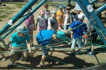 Какой отряд самый дружный? Что нужно для сплочения команды?? На эти вопросы нашли сегодня ответы наши дети, участвуя в подвижных играх на свежем воздухе во дворе школы, ведь в нашем лагере - "Веревочные курсы"! Все испытания были пройдены достойно, ребята, не отпуская рук, проходили сложнейший лабиринт, который надо было пройти с закрытими глазами, паутину, переправу, станцию "Экватор" и много другое, и почувствовали себя настоящей командой!