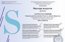 Танцевальный коллектив "Силуэт" группа "Карусель" приняли участие в III Всероссийском конкурсе инструментального, вокального, театрального и хореографического искусства "МАСТЕРА ИСКУССТВ" и стали лауреатами II степени. От всей души поздравляем наших девчонок! Так держать! Огромное спасибо преподавателю Мусину Радику Витальевичу.