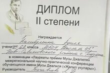 Поздравляем Насибуллину Адилю,ученицу 6а класса со вторым местом на межрегиональной научно-практической конференции имени Мусы Джалиля!!!