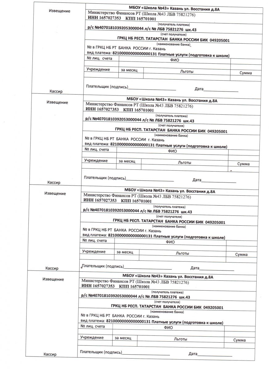 Образцы квитанций: Школа будущего первоклассника Основы грамматики английского языка