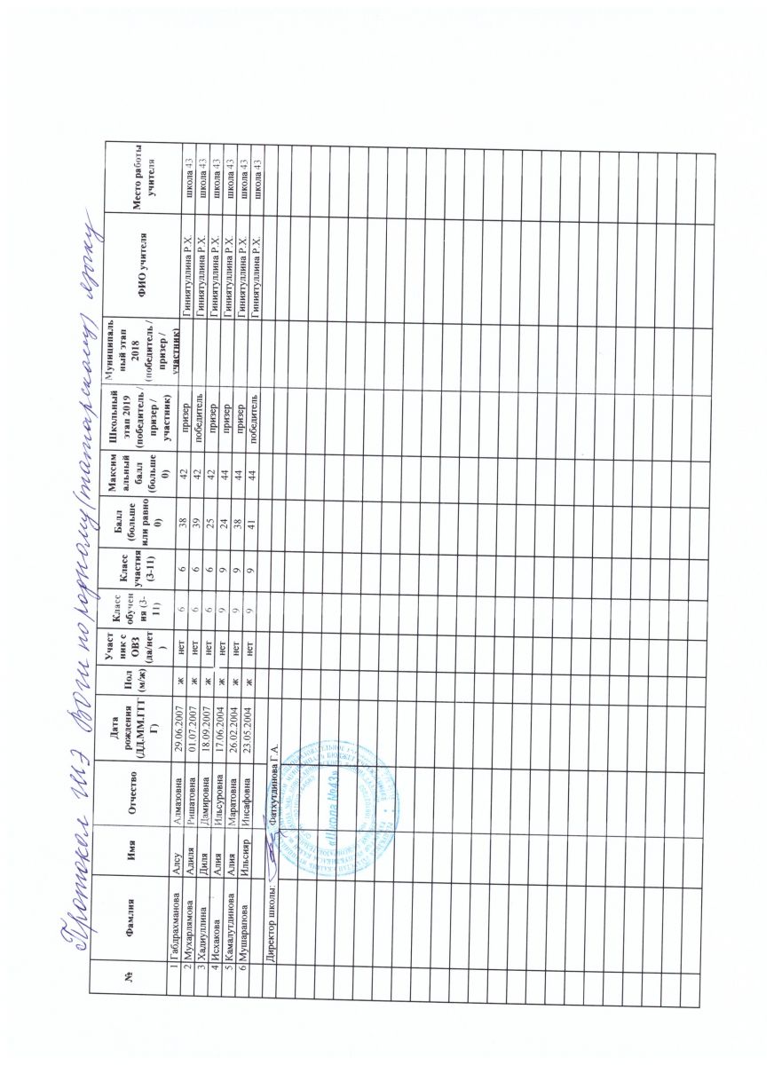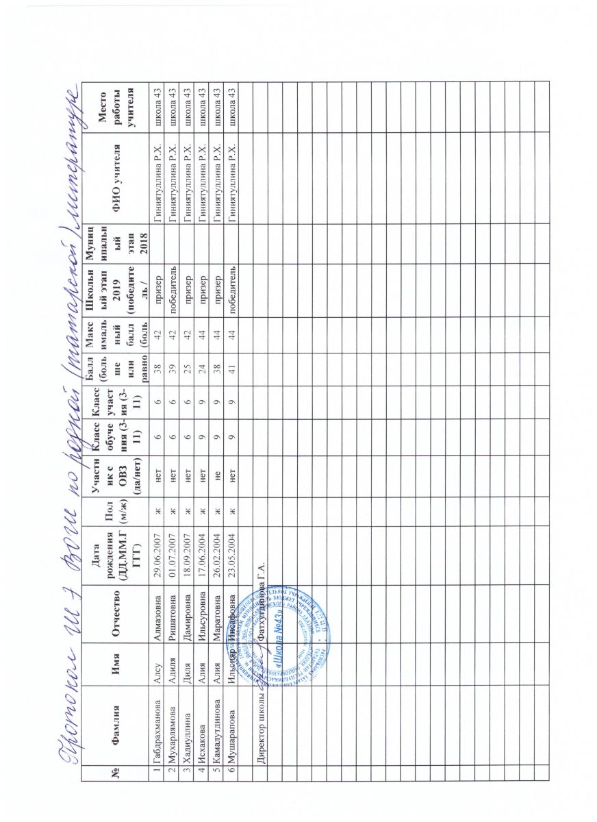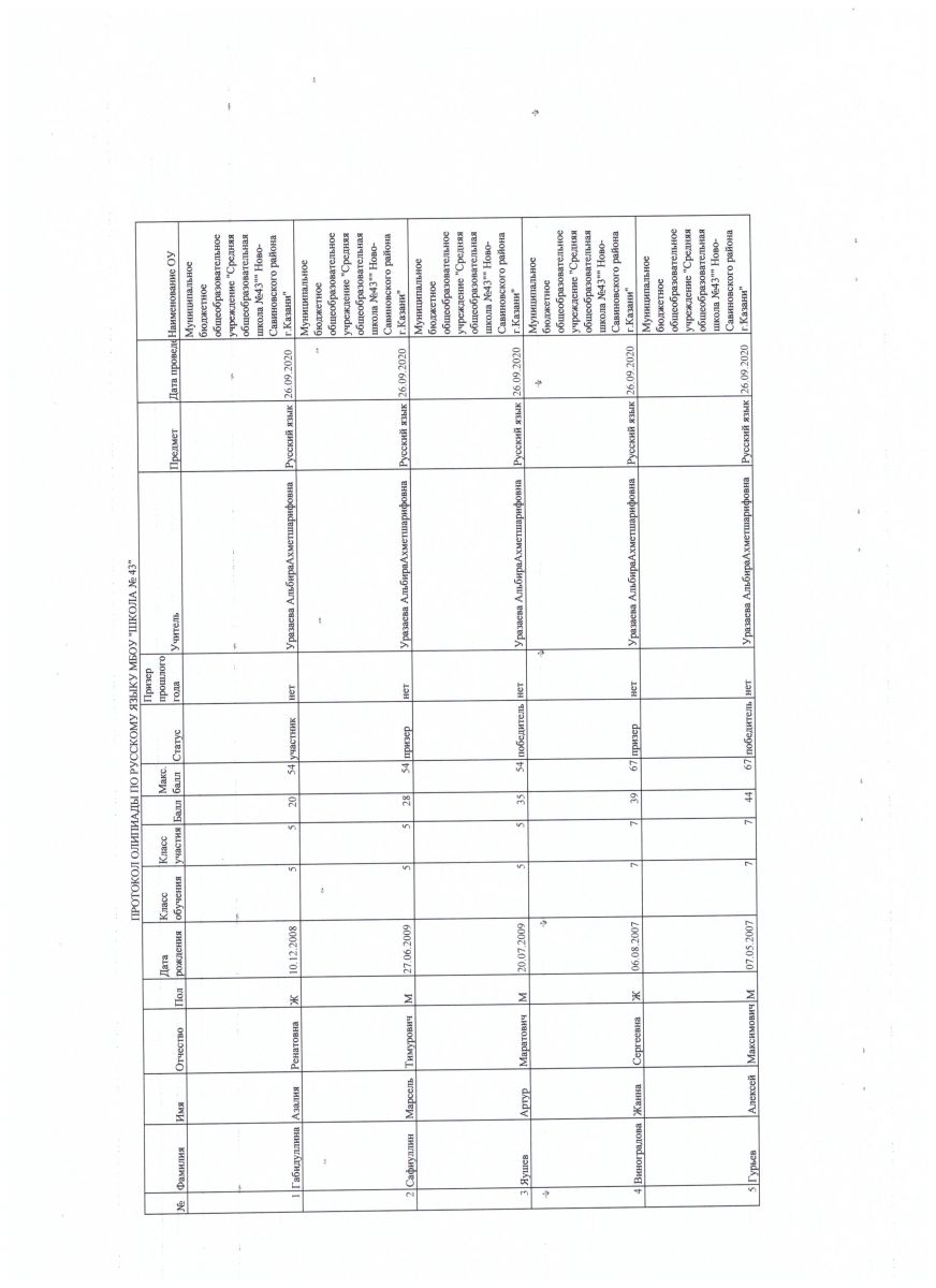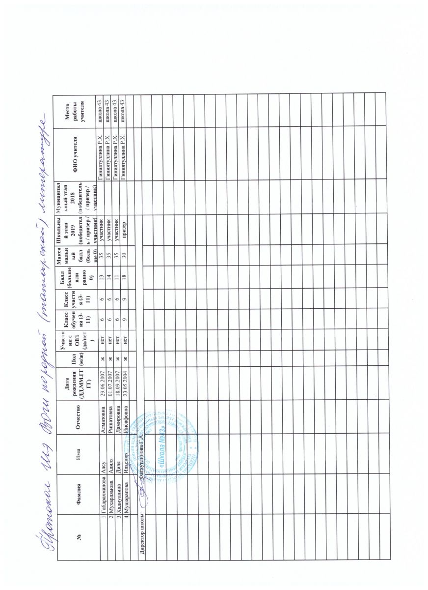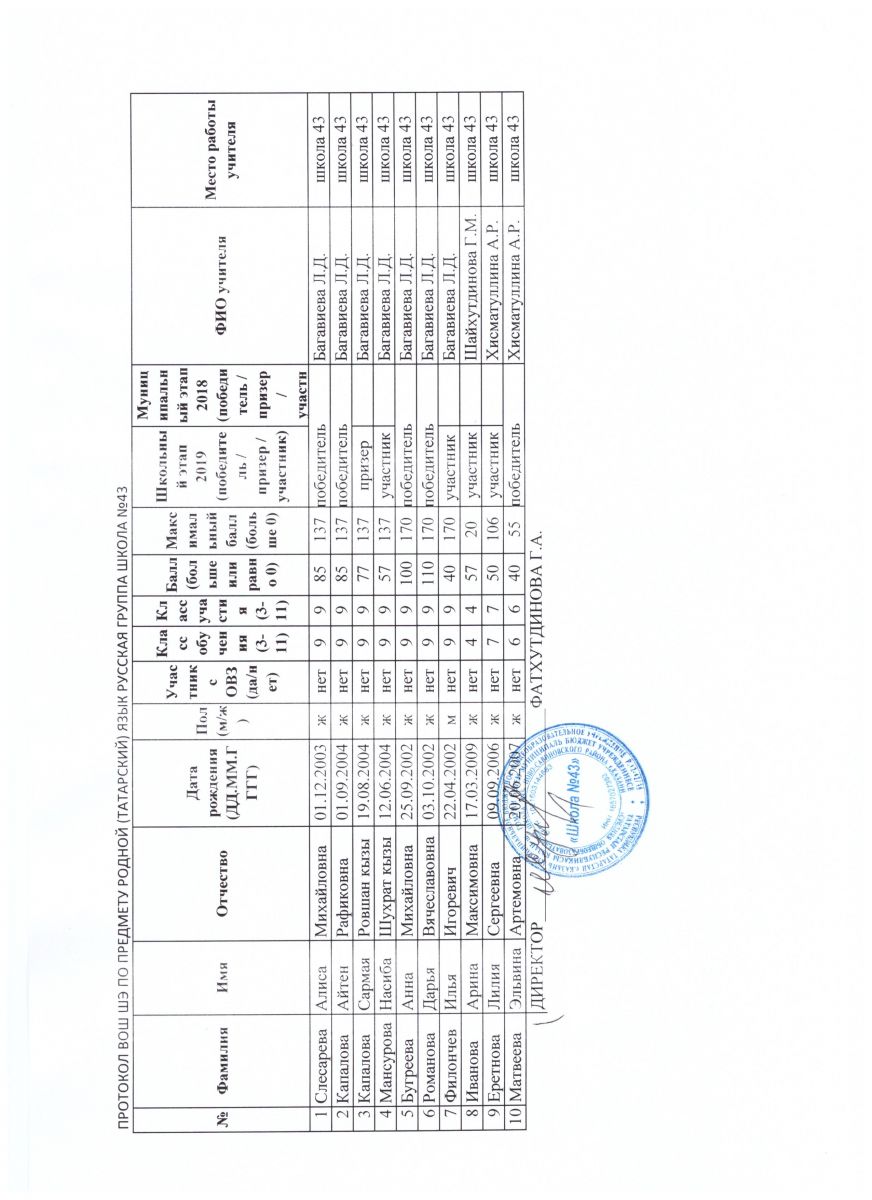 протокол олимпиады по родному татарскому языку.