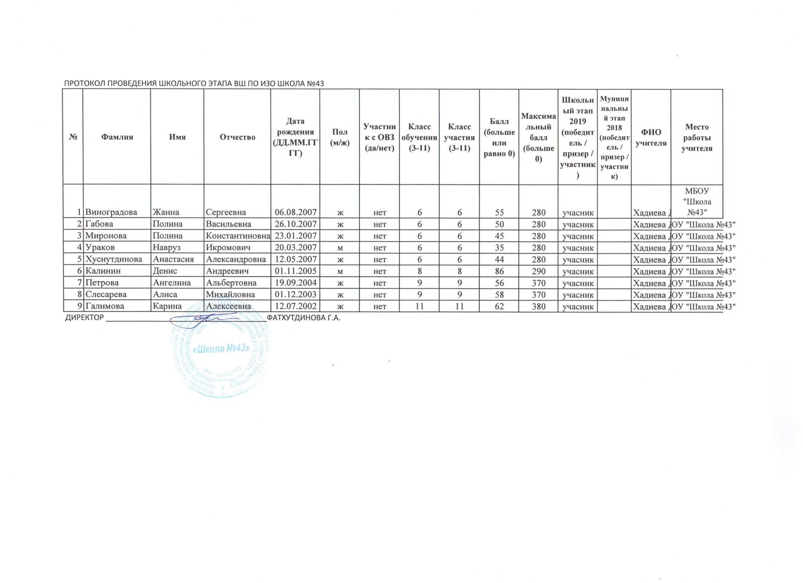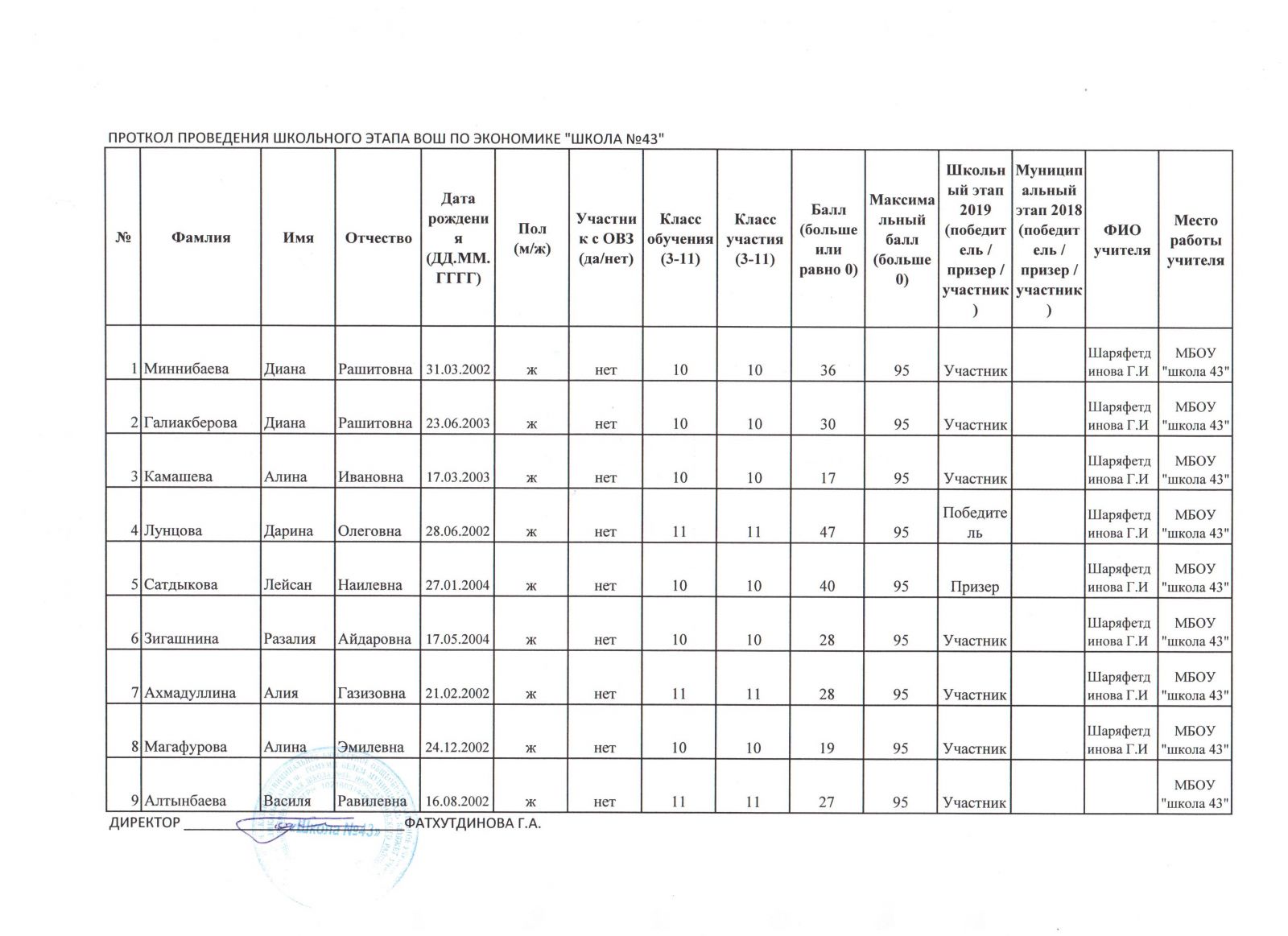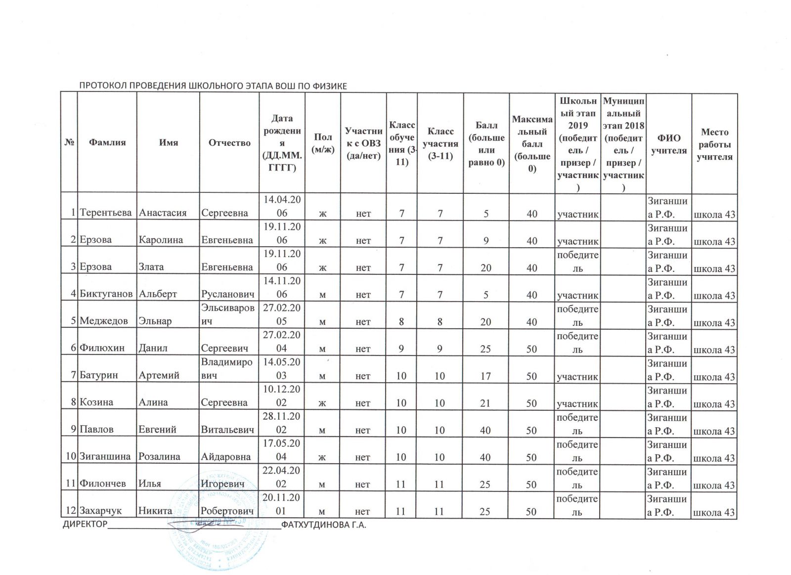 Физика Итоговый протокол