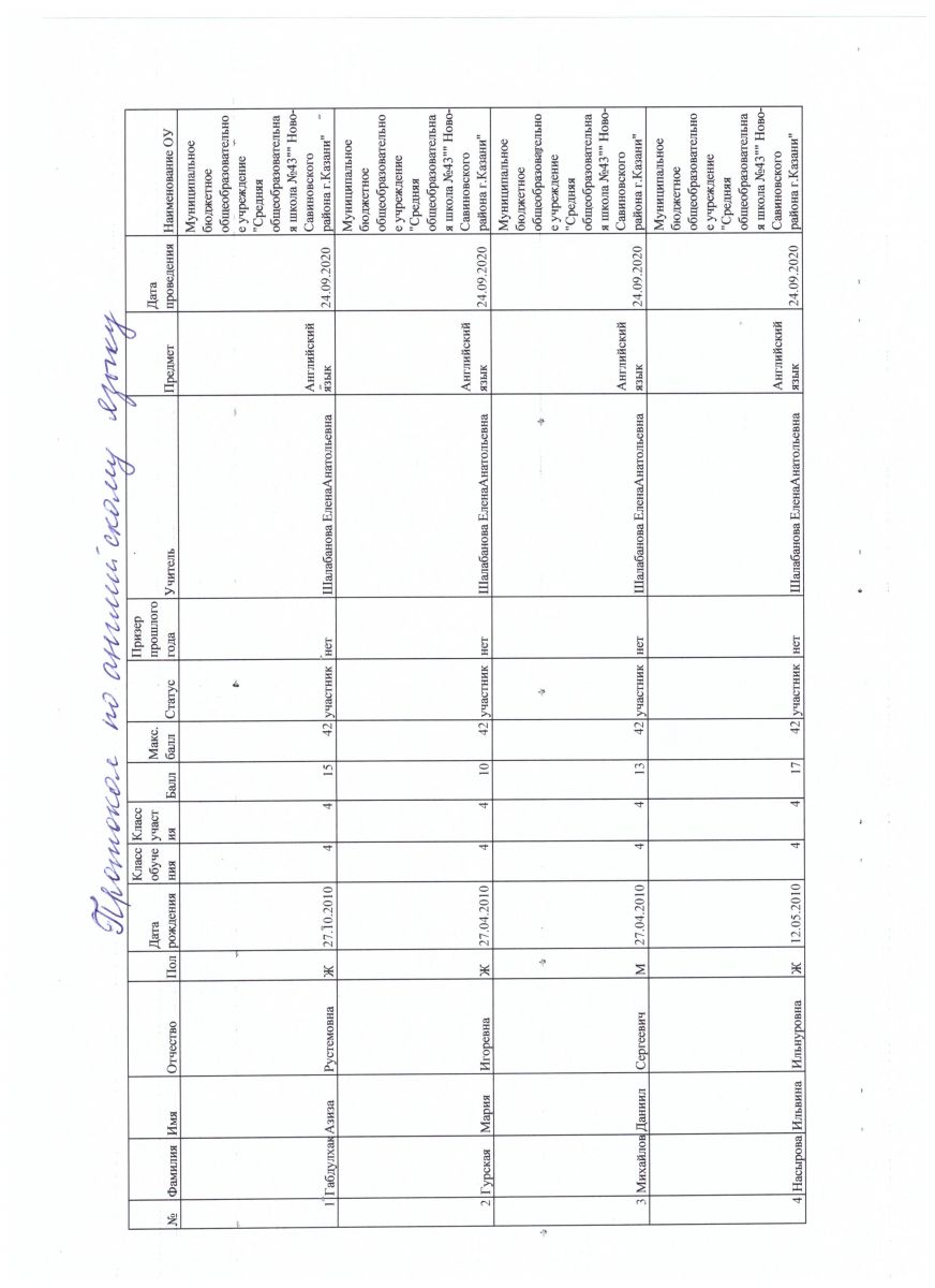 протокол олимпиады по английскому языку