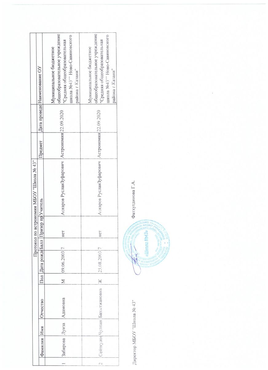 Астрономия Итоговый протокол