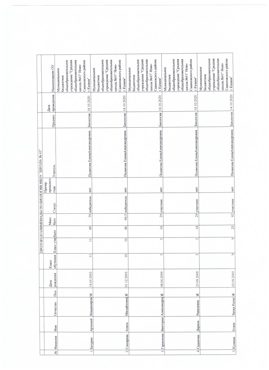 протокол олимпиады по биологии