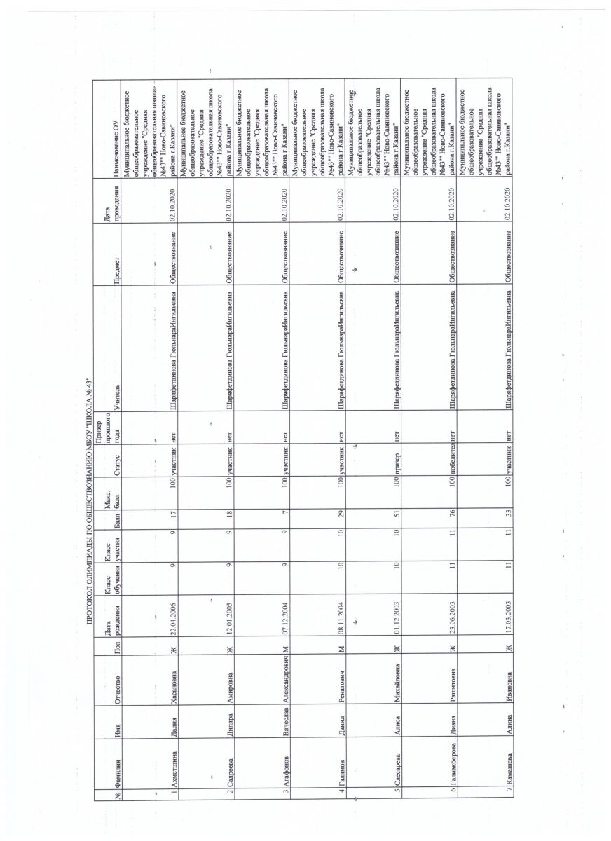 протокол олимпиады по обществознанию