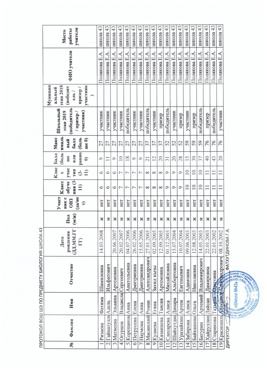 Биология Итоговый протокол