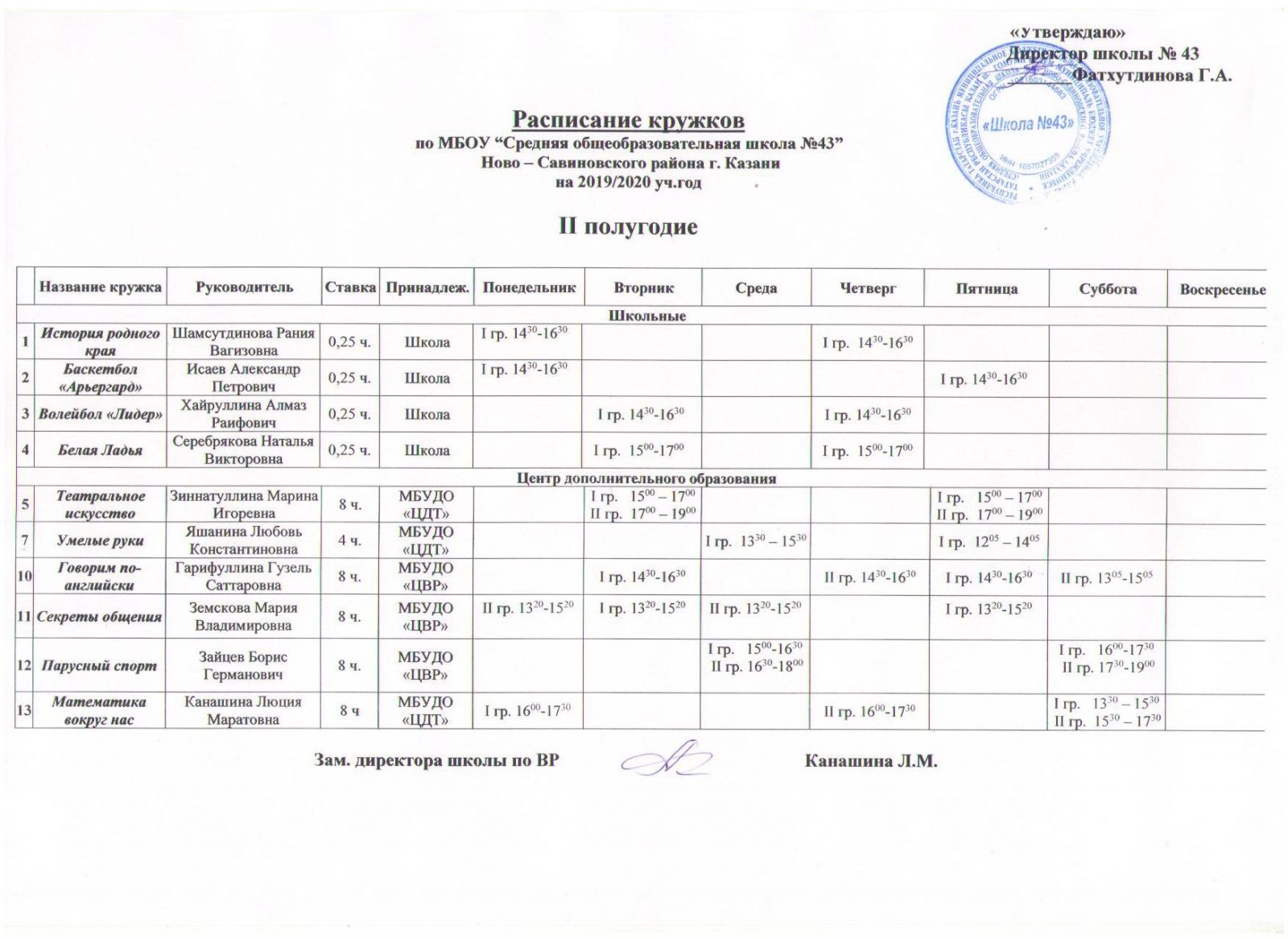 Расписание кружков на 2019-2020 : 1 полугодие 2 полугодие 2 полугодие - измененное измененное с 4 четверти