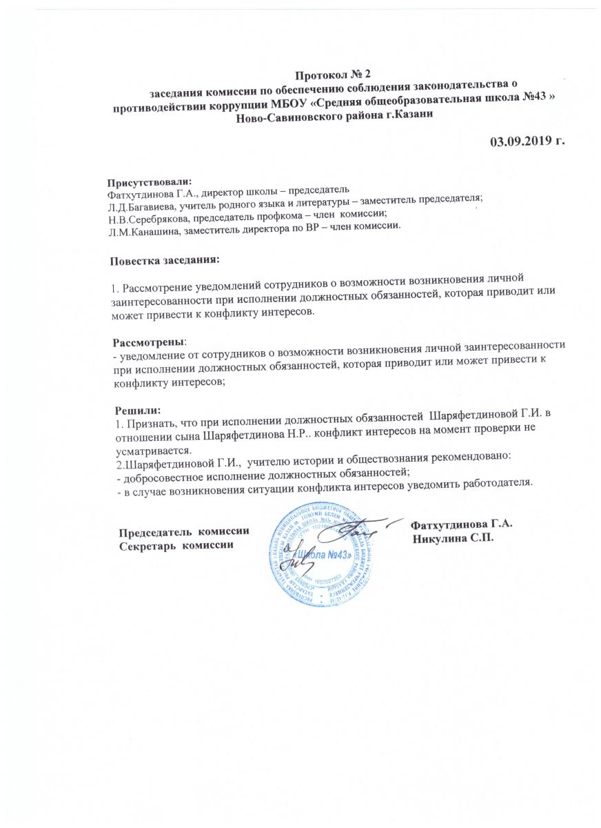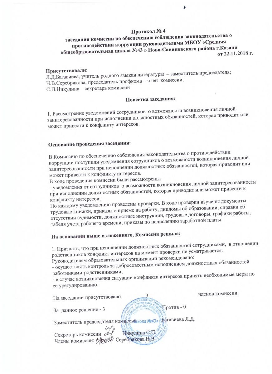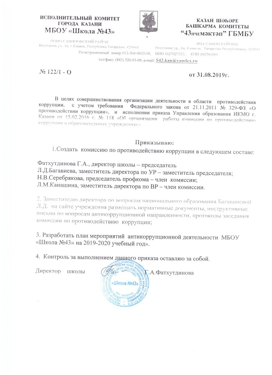 Приказ о создании антикоррупционной комиссии по МБОУ Школа № 43