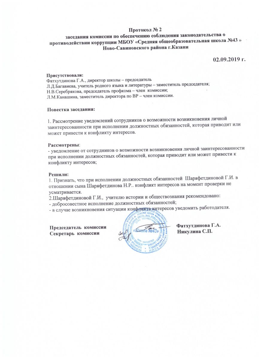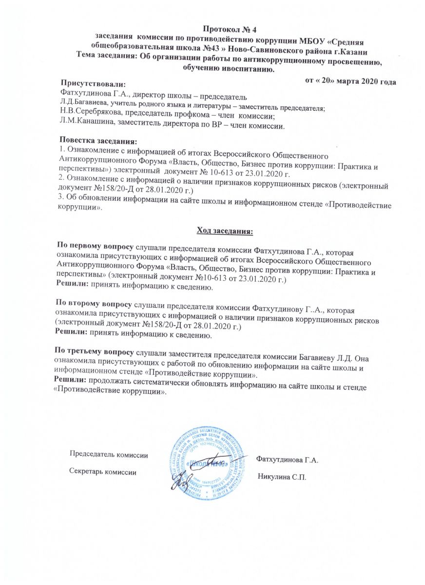 Приказ по МБОУ "Школа № 43" по антикоррупционной деятельности 2020-2021 год