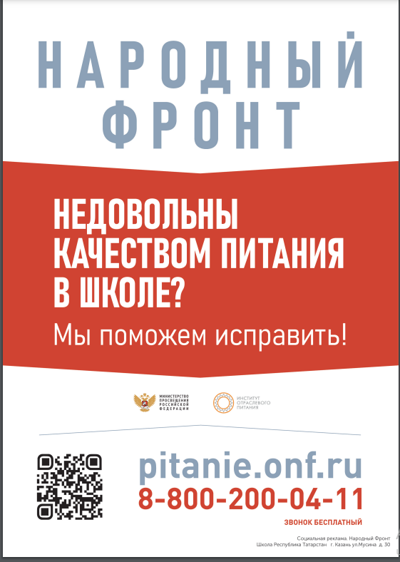 Плакат с индивидуальным QR-кодом горячие линии ОНФ «Школьный завтрак»