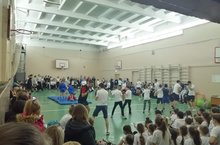 Сегодня в большом спортивном зале школы проходили " Весёлые старты" для наших первоклассников и их родителей!