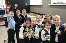 Сегодня ученики 1В класса в кружке робототехники создали модель, которая запускает волчок. Устроили соревнования, чей волчок дольше будет крутится.