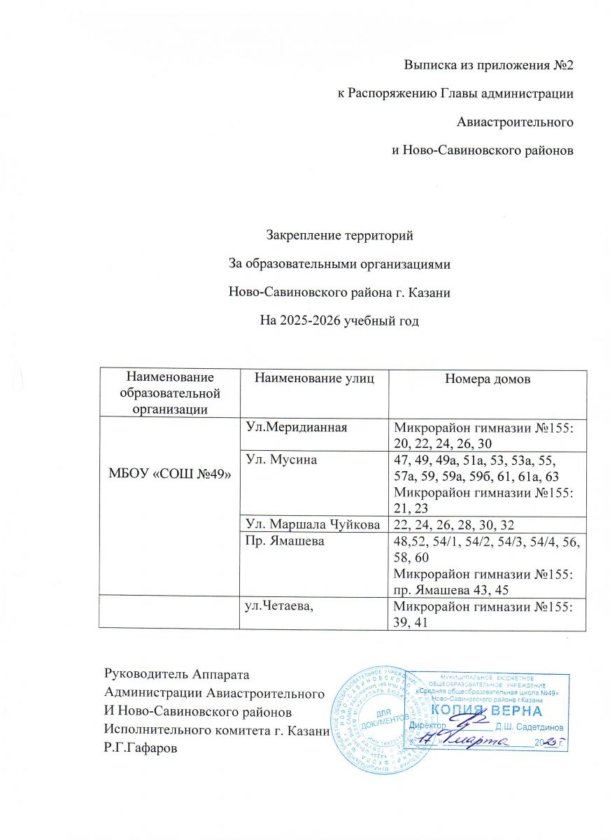 Закрепление территории за МБОУ СОШ № 49
