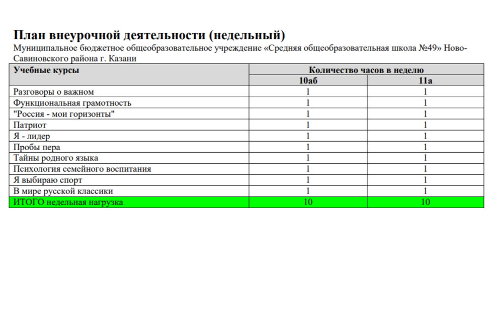 План внеурочной деятельности на уровень среднего общего образования на 2025-2026 уч.год