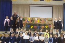 15 февраля учащиеся начального звена с радостью встретились на уроках литературного чтения с полюбившим актером Рустемом Гайнуллиным. Он находит рычаги воздействия на воспитательный характер маленького слушателя. Через произведения М.Зощенко помогает слушателям узнать этику и культуру поведения.