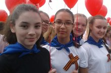 7 мая учащиеся 6 а класса приняли участие в акции "День Победы"? которая состоялась около Кремля. Учащиеся спели песни "День победы", "Катюша" и опустили красные шарики в небо.