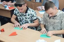Учащиеся старших классов готовят самолетики с пожеланиями для будущих первоклассников.