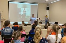 Пришкольный лагерь принял участие в мастер-классе художника М.Краева "Дельфин". Дети научились красиво рисовать и продемонстрировали свое творчество.