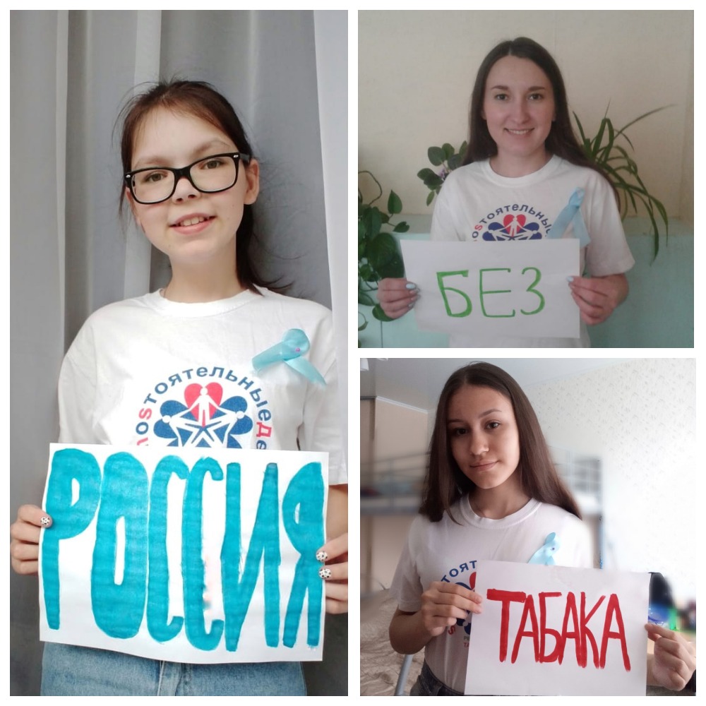31 мая 2020 г. в рамках Республиканского марафона по пропаганде здорового образа жизни «Здравствуйте и созидайте!» среди участников антинаркотического проекта «SaMoSтоятельные Дети» 7 класса «Счастливое детство» прошла общегородская антитабачная акция «Россия без табака». Цель акции: привлечение внимания жителей района к различным проблемам, возникающим в результате употребления табака, актуализация активной гражданской антитабачной позиции участников Республиканского антинаркотического проекта «SаMоSтоятельные дети».Символом данной акции стала голубая ленточка - "Лента свободы", которая символизирует чистый воздух и свободу выбора. Участники проекта создали проект дерева с завязанными голубыми ленточками знак приобщения к здоровому образу жизни.Среди активистов проекта был проведён конкурс рисунков «Я и мой мир», «Курить – здоровью вредить», «Солнце, воздух и вода – наши лучшие друзья».Кроме того, были обсуждены темы «Опасность «пассивного» курения – миф или реальность?», «Куренью – НЕТ! Здоровью – ДА!».Также состоялся просмотр видеороликов, фильмов о вреде табака.