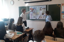 Ученик 8Г класса Щеголев Леонид выступил на классных часах перед учащимися начальной школы и одноклассниками со своей исследовательской работой "Святые Покровители Российского Отечества: Георгий Победоносец и Апостол Андрей Первозванный" - "Holy Patrons of the Russian Motherland: George the Victorious and Apostle Andrew the First-Called".