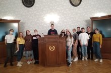 11 сыйныф КФУның Химия мәктәбе һәм тарихы музеенда булды, Казанның танылган химикларының исемнәре һәм эшчәнлеге белән таныштылар, Император залы кәнәфиләрендә, 19 нчы гасыр аудиториясе парталары артында утырдылар.
