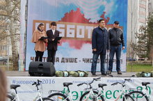 23 апреля, а день общегородского субботника, в парке Континент состоялось торжественное награждение организаций, наиболее отличившихся в акциях по санитарной очистке города. Девять организаций Авиастроительного и Ново-Савиновского районов были отмечены ценными подарками. В том числе и наша школа. Мы получили палатку от Министерства экологии и природных ресурсов Республики Татарстан. Сертификаты на призы вручали глава Администрации Авиастроительного и Ново-Савиновского районов Т.Л.Алибаев и первый заместитель Министра экологии и природных ресурсов РТ Р.И.Камалов.