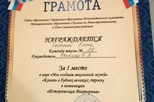 Скаченко Елена в составе команды школы №89 заняла 1 место за исполнение патриотической песни в игре "Мы создаем школьный музей" в номинации "Историческая викторина". Молодец!