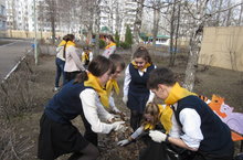 13 апреля волонтеры отряда "МЧС", участники проекта "Самостоятельные дети", провели средник по уборке территории ГАУЗ "Республиканский дом ребенка".
