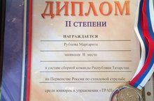Поздравляем ученицу 10А класса Рубцову Маргариту, ставшую серебряным призером в составе сборной Республики Татарстан на Первенстве России по стендовой стрельбе.