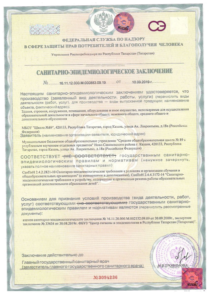 МБОУ «Средняя общеобразовательная школа №89 с углубленным изучением отдельных предметов» Ново-Савиновского района г.Казани