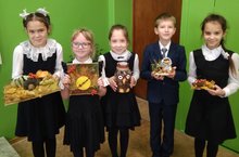 Ученики 2Б класса (кл.рук. Мухина Н.В.) со своими оригинальными работами приняли участие в конкурсе осенних поделок "Дары осени". -