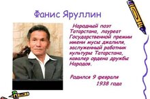 3." Что я знаю о Фанисе Яруллине?" (интересные факты из жизни и творчества поэта). -