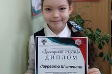 Рыбалкина Полина, ученица 3а класса награждена Дипломом Победителя во Всероссийской олимпиаде Заврики по окружающему миру