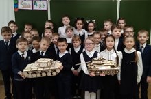 Ученики 1Б класса подготовили с помощью родителей модели танков к выставке-конкурсу моделей военной техники времен Великой Отечественной войны.
