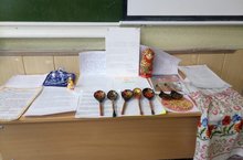 В рамках проекта:"Устное выступление" учащиеся 6А и 6В класса подготовили выставку предметов народного промысла и коротко рассказали о каждом экспонате -