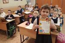 Ученик 1а класса Колсанов Константин активный участник очных Республиканских олимпиад, он получил сертификат за участие в олимпиаде по математике.