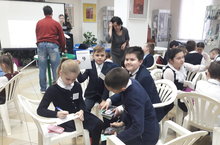 Ученики 3а класса Щипкова К, Хохлов И, Абдуллин И, Закиров К участвовали в игре " Математическое домино" в Городском Дворце ДТ им.А.Алиша и заняли 1 место