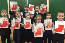 На носу у нас Новый год и Рождество. Поэтому ученики 2б класса на уроке изобразительного искусства нарисовали рождественские подарочные носочки.