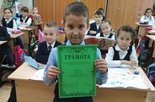 Ученик 1а класса Салахиев Раян награждается грамотой за активное участие в школьном конкурсе видео - поздравлений!
