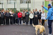 На базе МБОУ «Школа №103» в рамках республиканской акции «Мои дела в защиту животных» была проведена встреча с Дудкиным Дмитрием Николаевичем - бывшим начальником Центра кинологической службы Управления МВД России по г. Казани (майор полиции в отставке). Дмитрий Николаевич поделился особенностями воспитания пород собак, физиологическими особенностями, а также провел инструктаж по правилам поведения с незнакомыми собаками, встрече с агрессивным животным и правилам общения с животным с хозяином. В ходе встречи ученики смогли задать свои вопросы и, конечно же, пообщаться с лабрадором Центой.