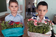 Ученики 1Б класса Беляков Амир и Давыдова Аделя приняли участие в озеленение пришкольного участка!
