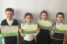 Ученики 1Г класса Тимофеева К., Шишкин С., Исмагилов Э., Зиновьева А. награждены Благодарственными письмами за активное участие в XII Открытом конкурсе "Сохраним леса Татарстана"