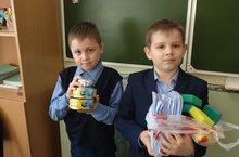 Учащиеся 1г класса приняли участие в школьной акции "Окажи помощь приюту бездомных животных"(поселок Столбищи): Исмагилов Эмиль, Кривушкин Егор.