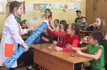 Сегодня к нам в лагерь пришла профессор Молекула, чтобы добавить завораживающих и веселых научных опытов в разнообразную программу досуга ребят. Дети не только с удовольствием отвечали на вопросы, но и имели возможность своими руками потрогать происходящие чудеса.